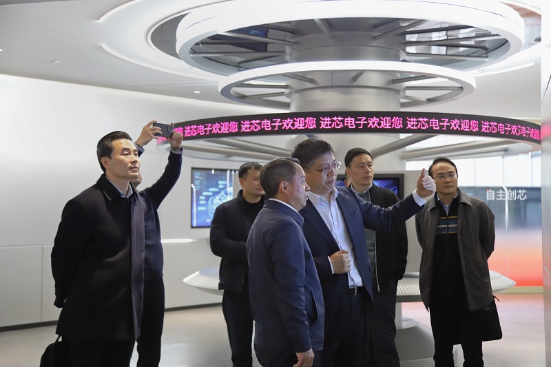 2024年2月21日,湖南大學校長段獻忠一行蒞臨進芯電子指導交流,進芯電子董事長黃嵩人、副總經理易峰參與接待,陪同調研并座談。