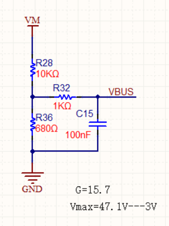 母線電壓采樣電路,通過(guò)電阻分壓送到芯片AD口,參與運(yùn)算。