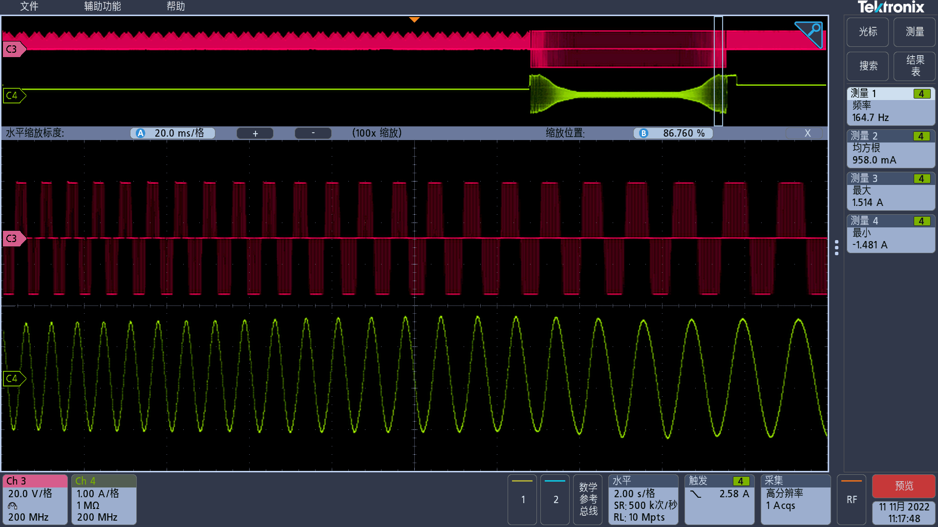 基于以上應用介紹,我司設計了一塊用于驅動12V兩相四線步進電機的電子水閥的控制DEMO板。板卡實物圖和實測波形圖如下圖所示: