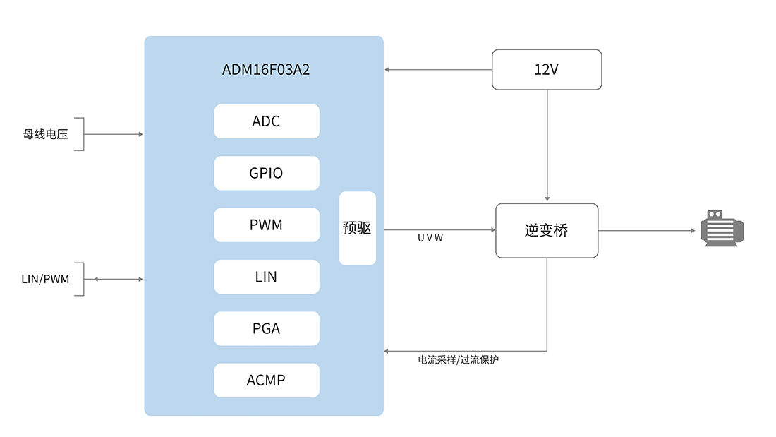 該方案采用單電阻FOC算法,電路簡單,成本低;通過自研無感FOC算法,功率閉環、速度閉環,具備電機控制平穩,運行噪音小、強帶載啟動能力等優勢