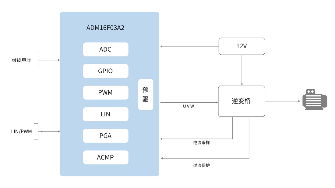 該方案主控DSP集成LDO、預驅及LIN模塊,電路簡單、成本低;轉速可調節,恒流運行;啟動及運行電流小,非常適用于小型低功率步進電機